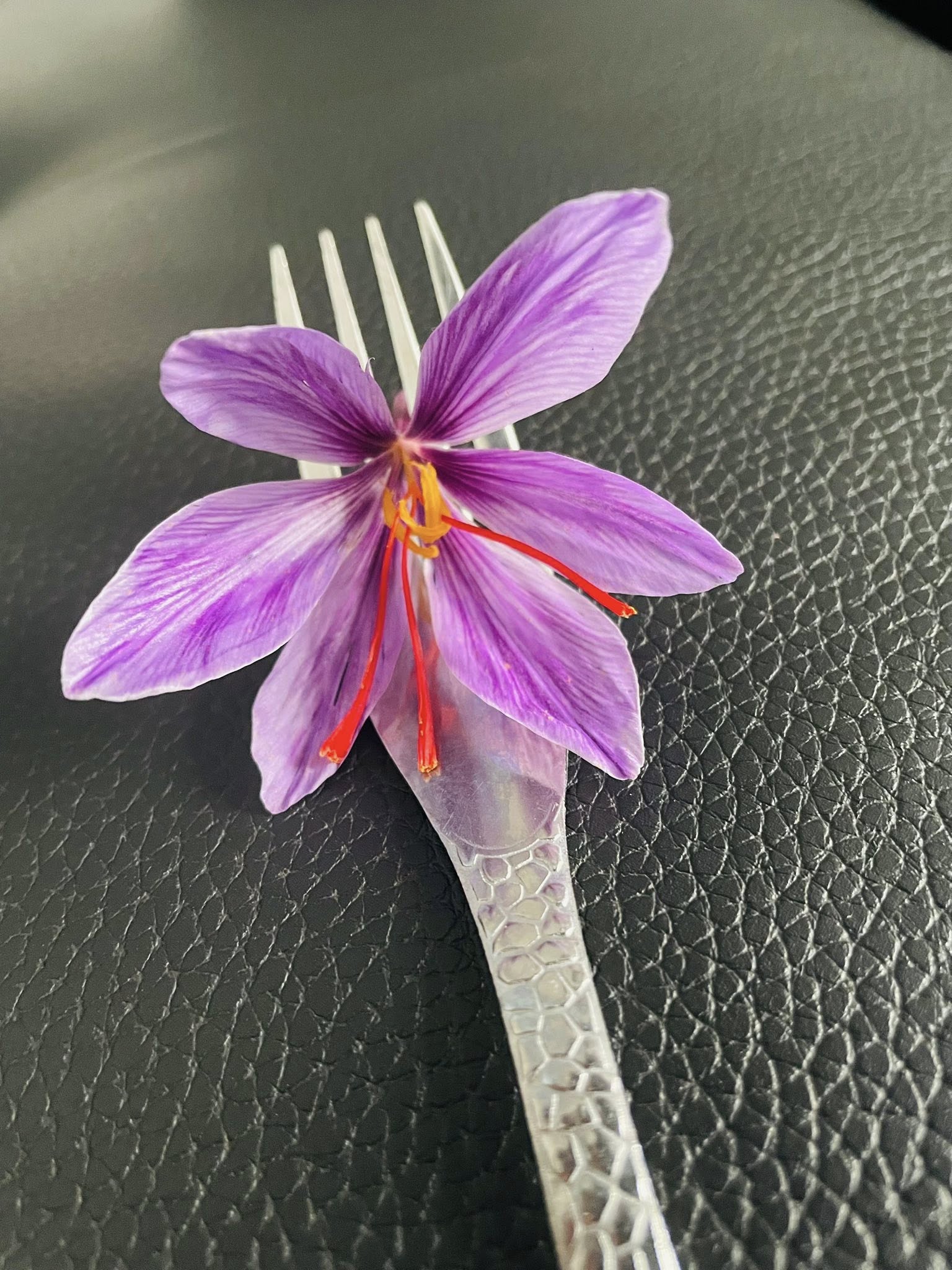 Ici, tout est fait à la main, de la plantation des bulbes à la récolte délicate des fleurs, une par une. Chaque matin d'octobre, durant la brève période de floraison, les fleurs sont cueillies avant que le soleil ne soit trop haut. Ensuite, dans l'atelier, vient l'étape la plus minutieuse : l'émondage, qui consiste à extraire les trois précieux pistils rouges de chaque fleur. Aucun produit chimique n'est utilisé, garantissant un safran 100% naturel.