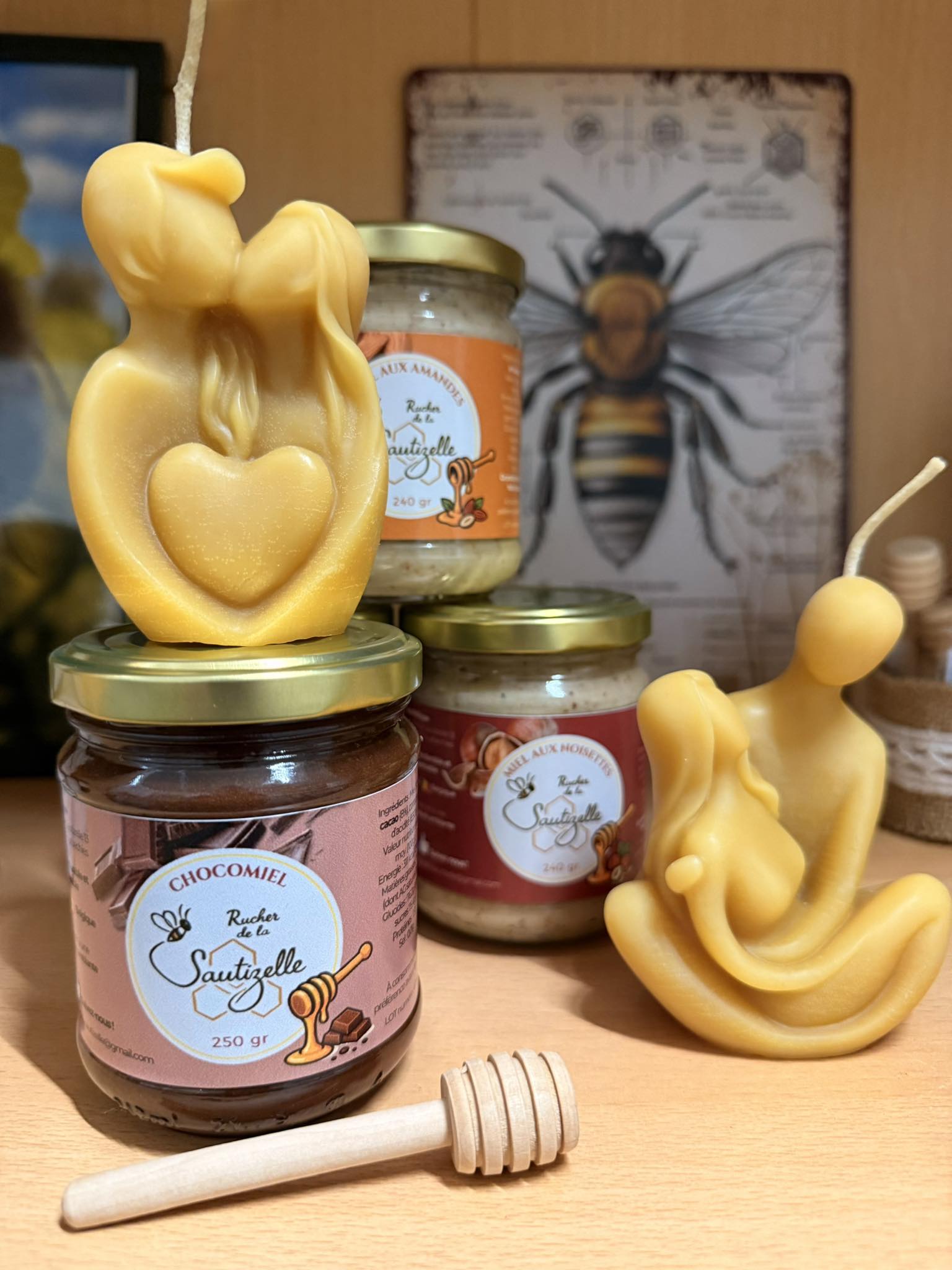 La philosophie du Rucher de la Sautizelle est simple : tout est produit de A à Z au sein de l'exploitation. De l'élevage des abeilles à la récolte du miel, jusqu'à la mise en pot, chaque étape est maîtrisée avec soin pour garantir un produit d'une qualité irréprochable. Ce contrôle total permet de proposer une gamme de miels aux saveurs variées, comme le Miel de Printemps ou le Miel d'Été, chacun reflétant la diversité florale des saisons.